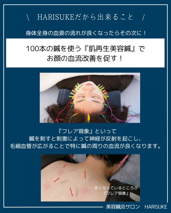 これをフレア現象といい、鍼の周囲の血流が一時的に大きく改善します。